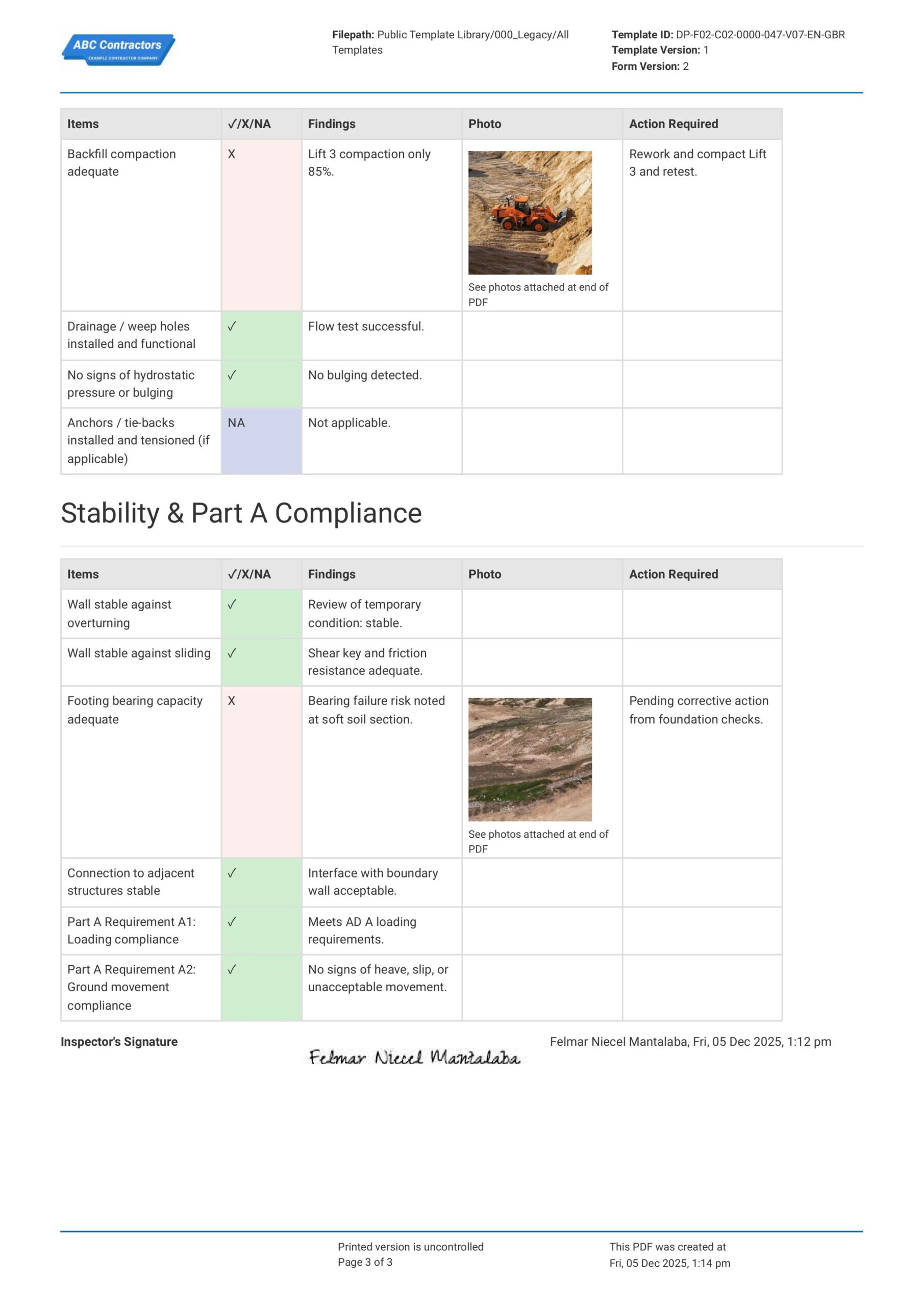 Compare this Retaining Wall Inspection Report to paper-based forms created from Word, Excel, or PDF