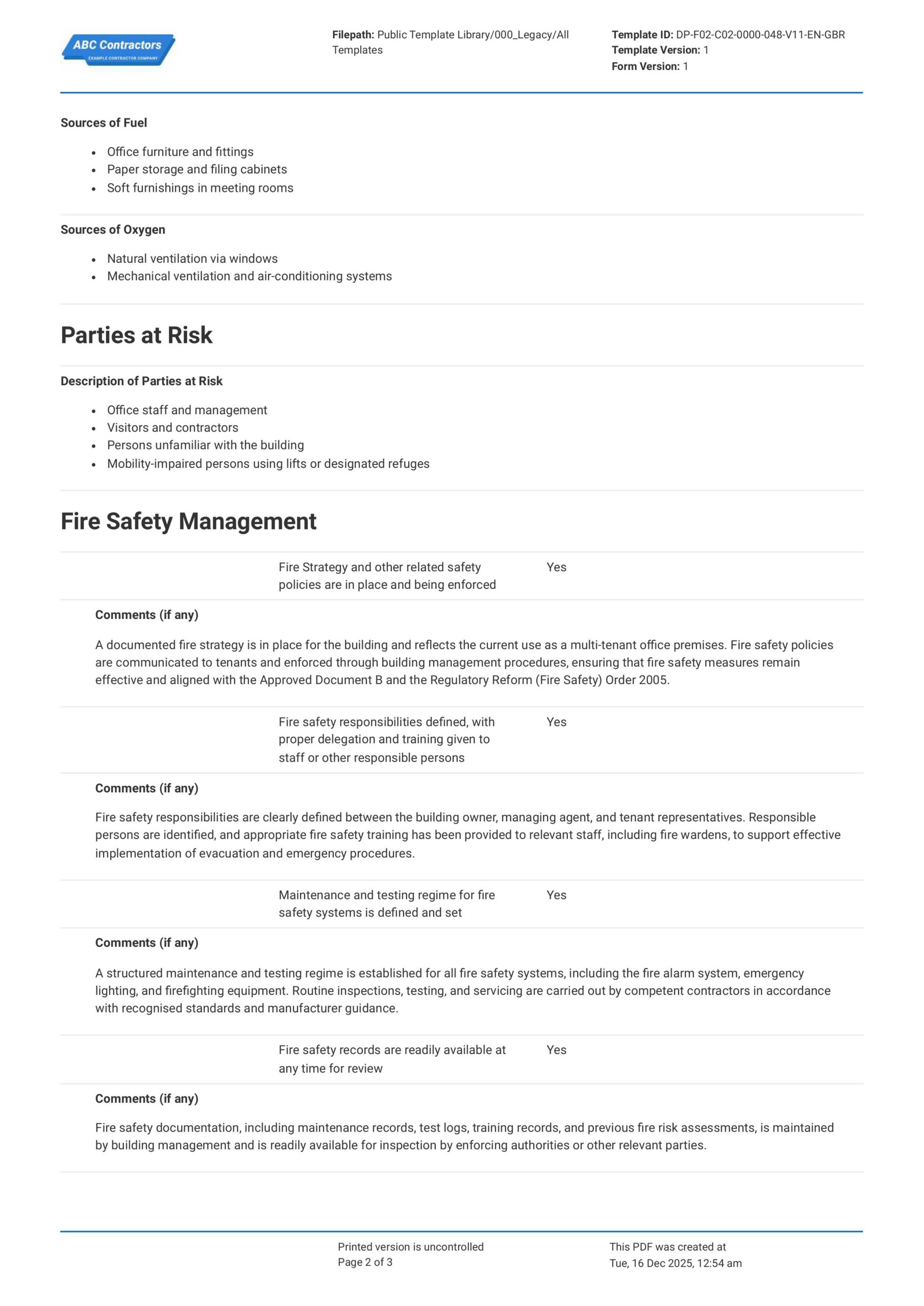 Compare this Building Fire Risk Assessment with forms created on Word or PDF