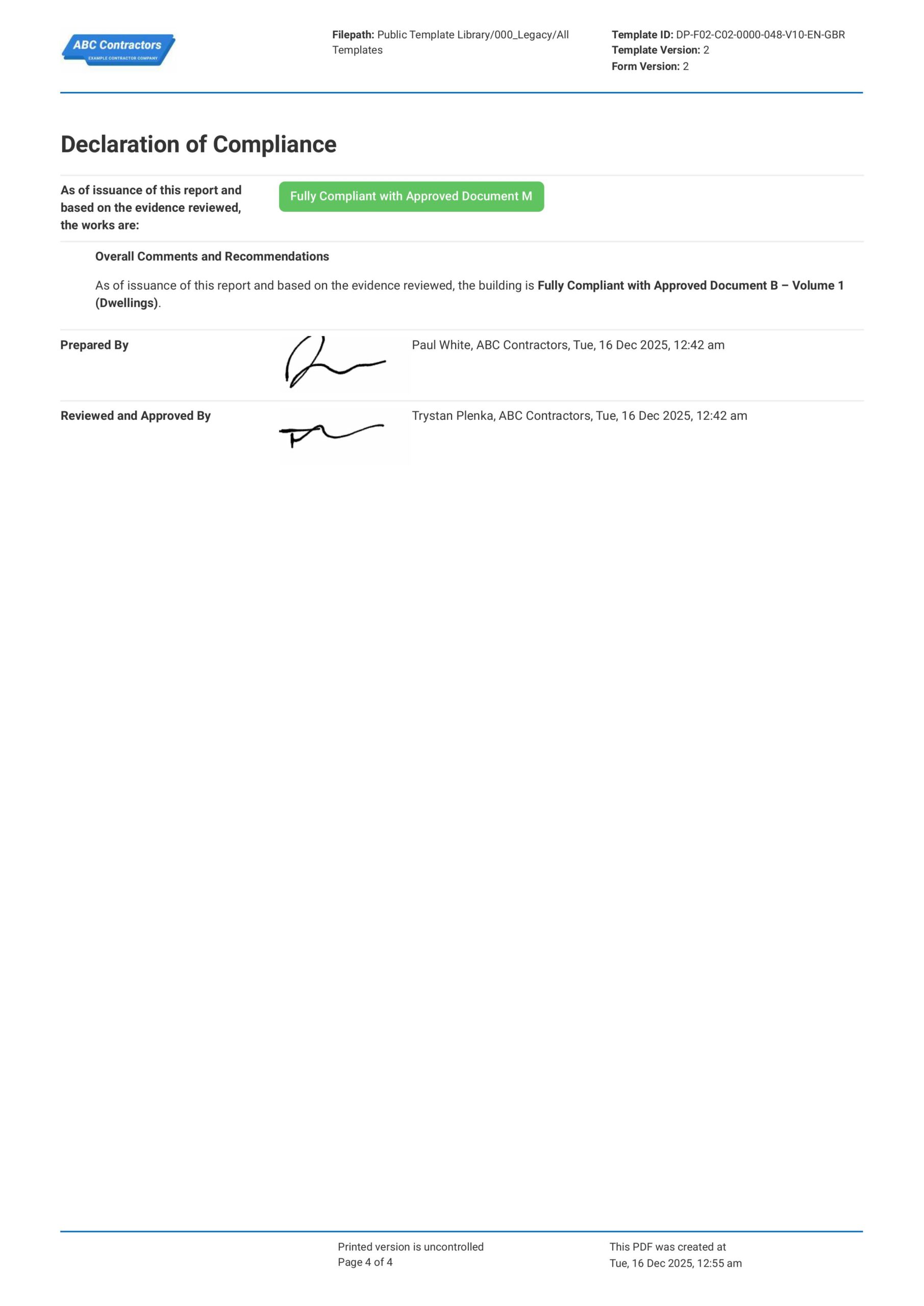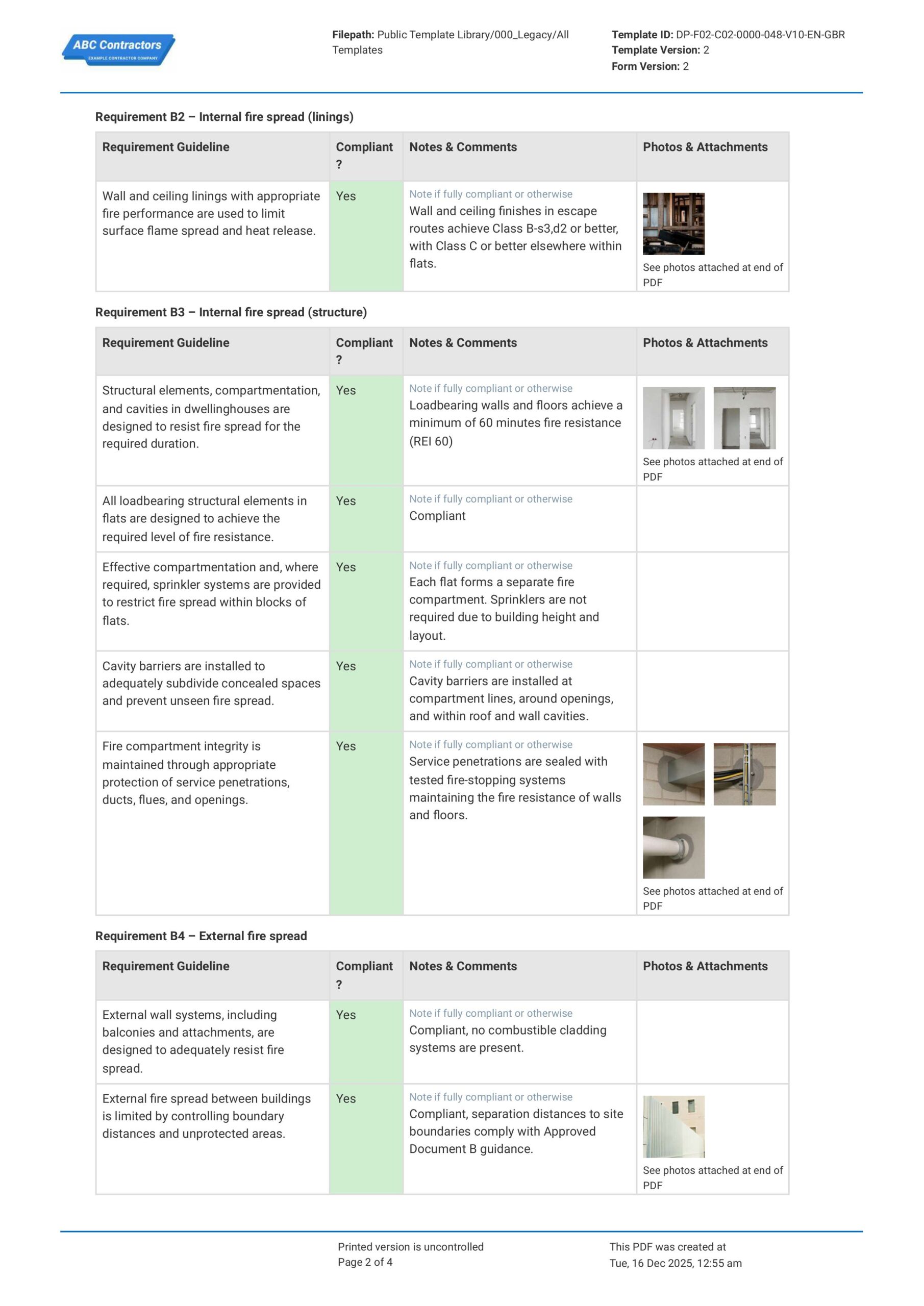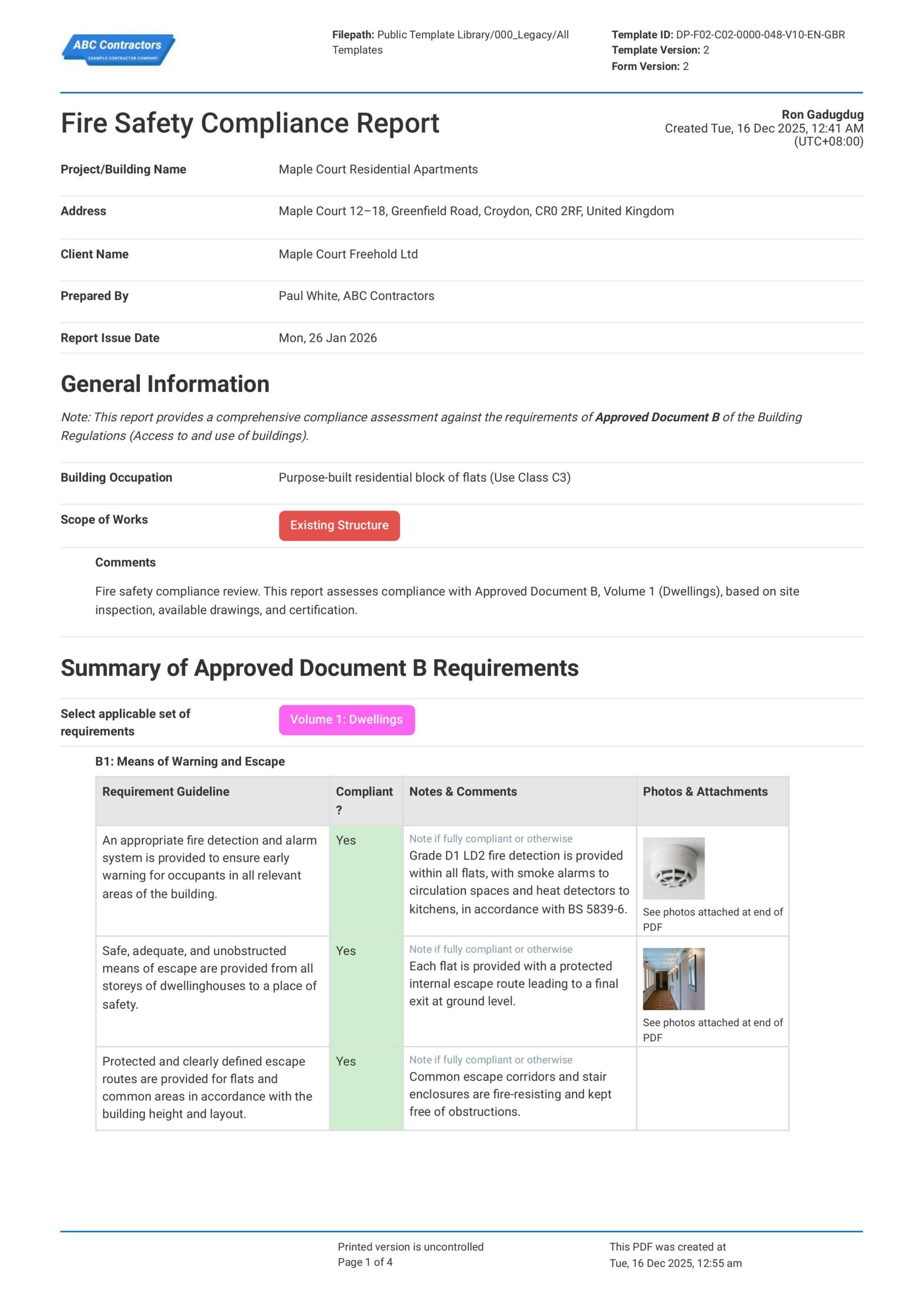This compliance report was built to help you comply with Approved Document B regulations in the UK. It includes important regulations and requirements that you will need to go over and demonstrate compliance to.
