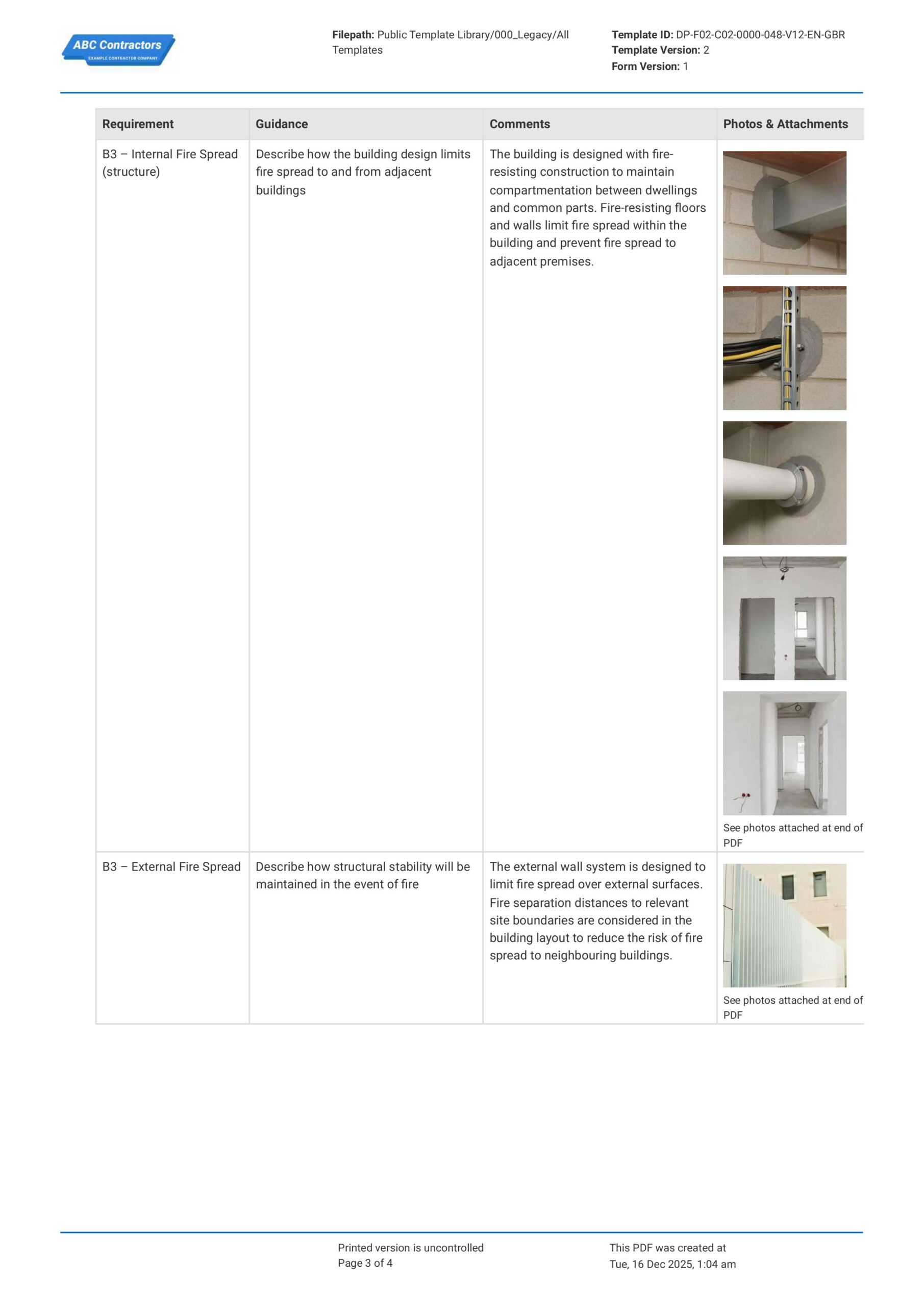 This Fire Safety Pre Plan includes specific guidelines to help you describe how your designs comply with Approved Document B Regulations. Whether you're working on a dwelling or a non dwelling, you ensure that you create a comprehensive pre plan to detail all your system requirements. Plus you can even attach files and photos to the form for quick references.