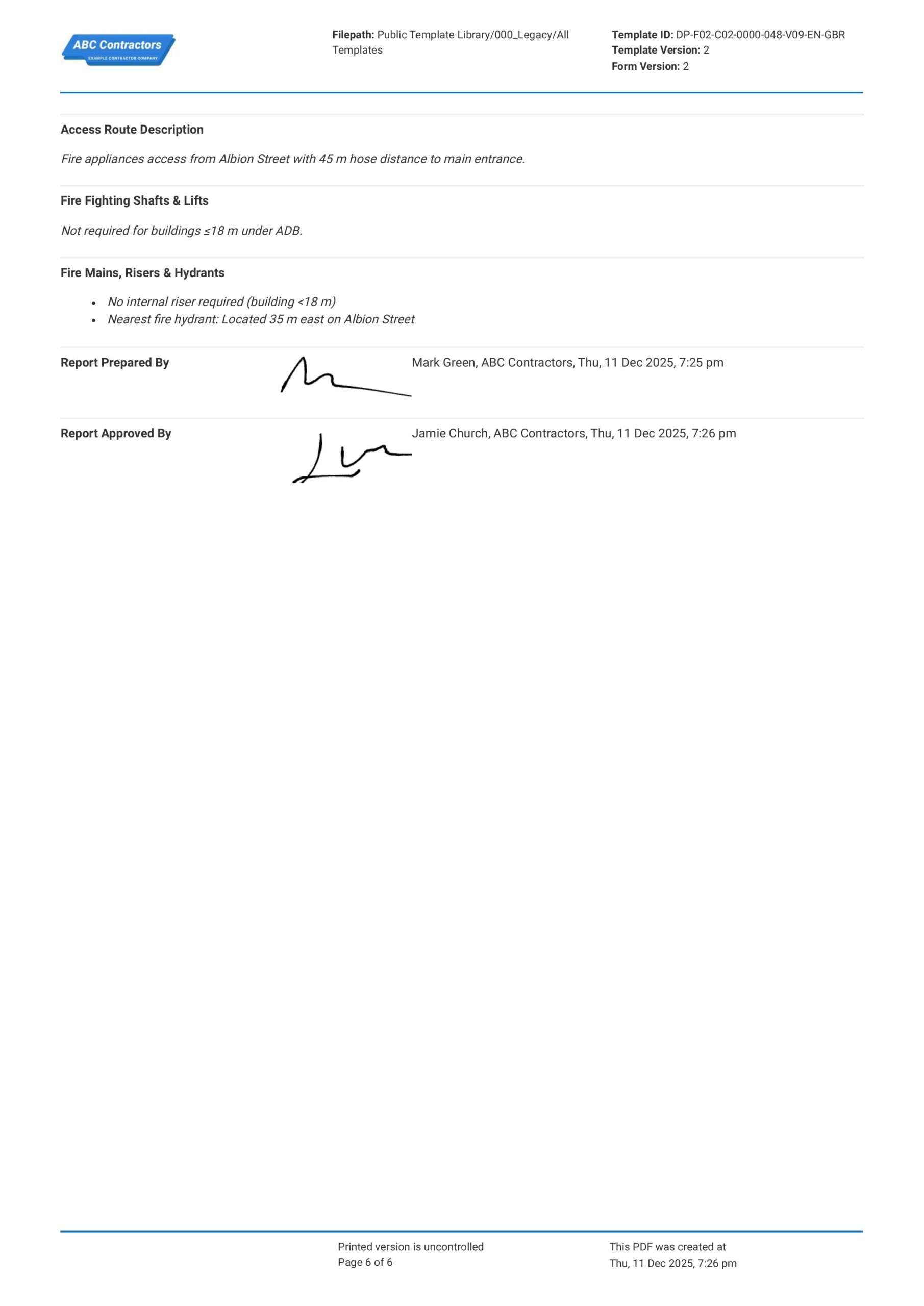 This Fire Strategy Report was built entirely based on the Approved Document B Building Regulations. This means if you’re in the UK region, you can easily create reports to help you comply with building safety regulations.