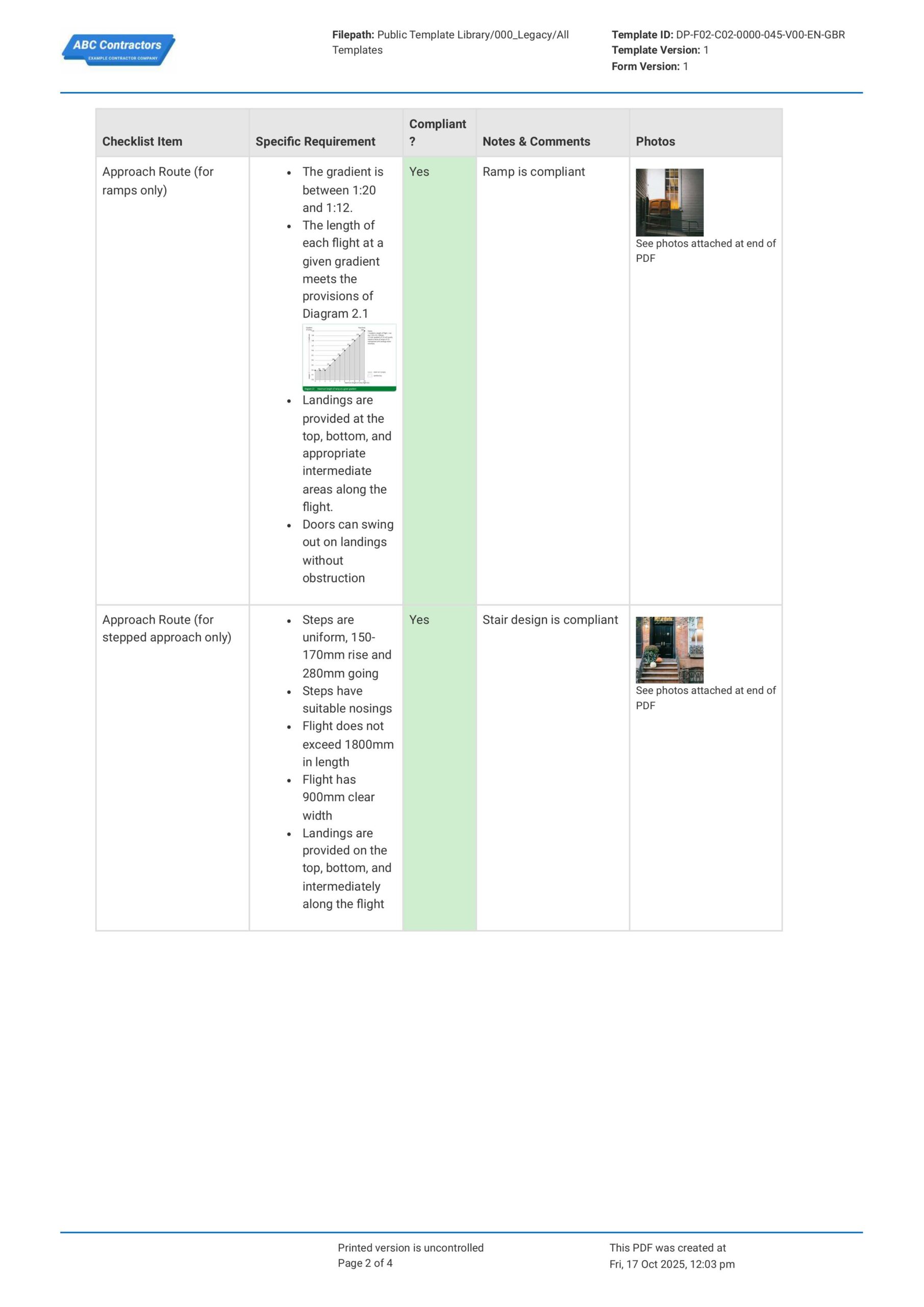 Compare this Part M Accessible Route Checklist with other templates made with formats like Word or PDF