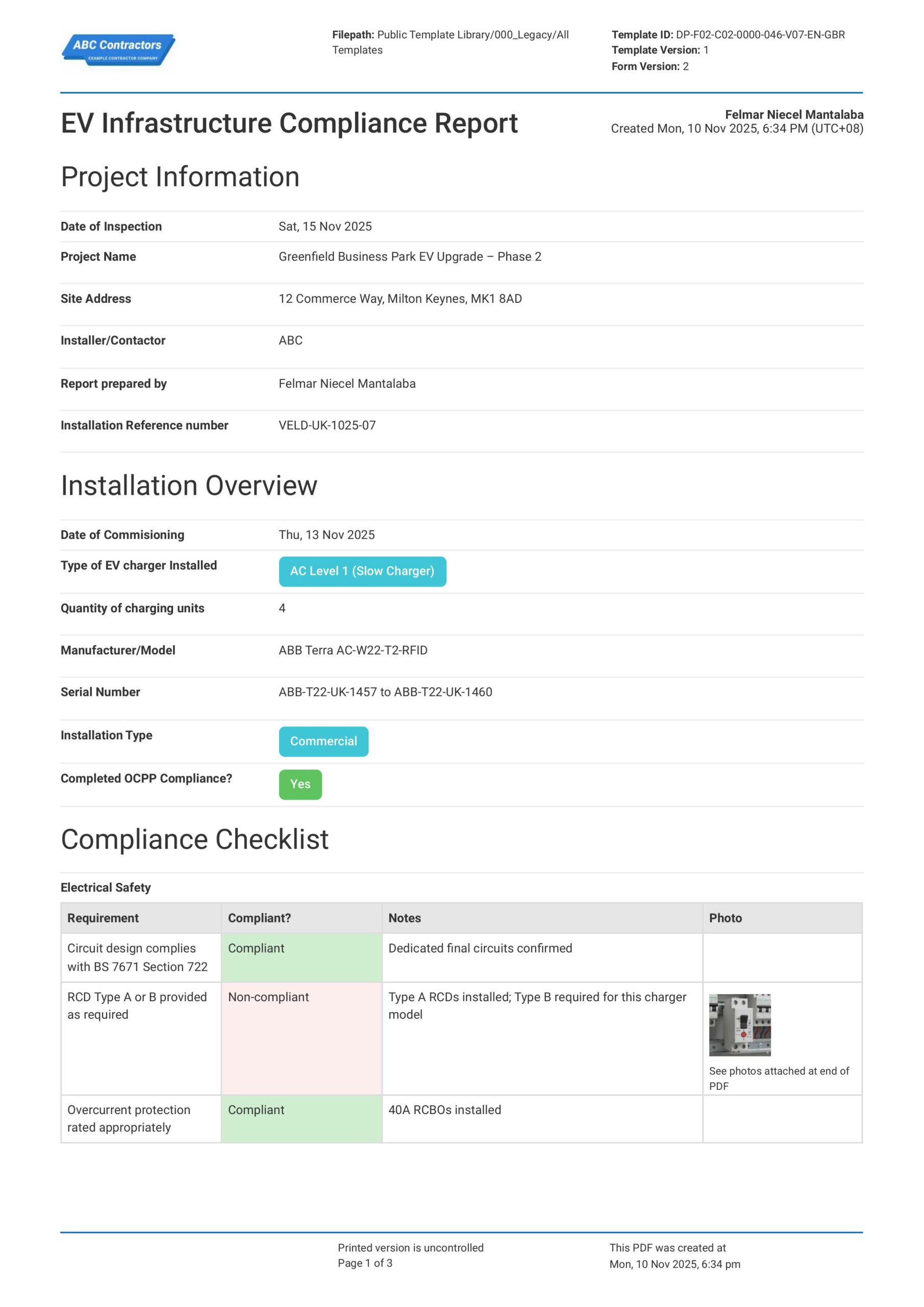 Use this EV Charging Compliance Infrastructure Report template for free.
