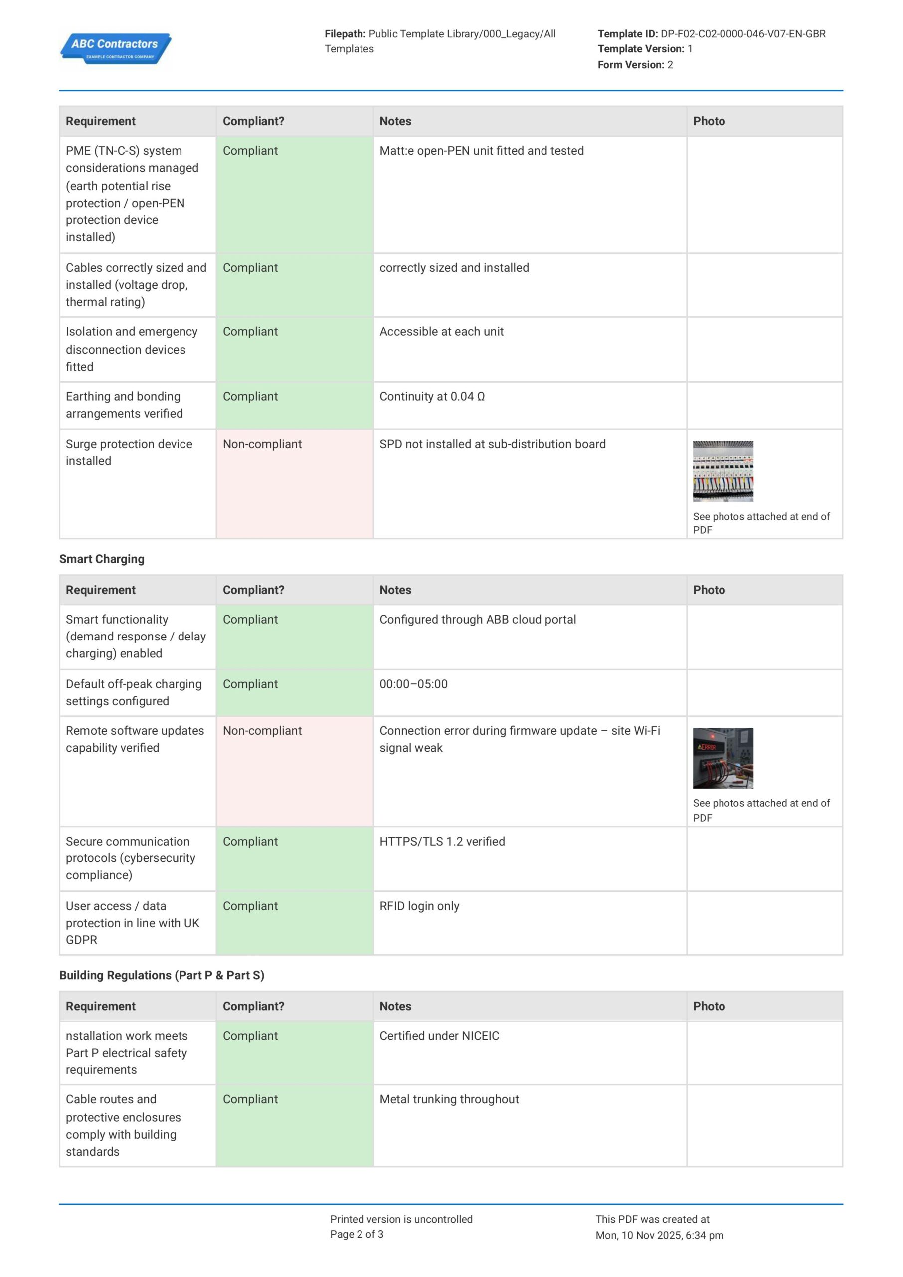 An EV Charging Compliance Infrastructure Report is an inspection process that assesses the compliance of an EV charging point with regulatory requirements. It carefully examines whether EV charging stations follow the provisions set by the UK's Part S: approved documents, the British Standards Institution (BSI), and the Electric Vehicles (Smart Charge Points) Regulations 2021.