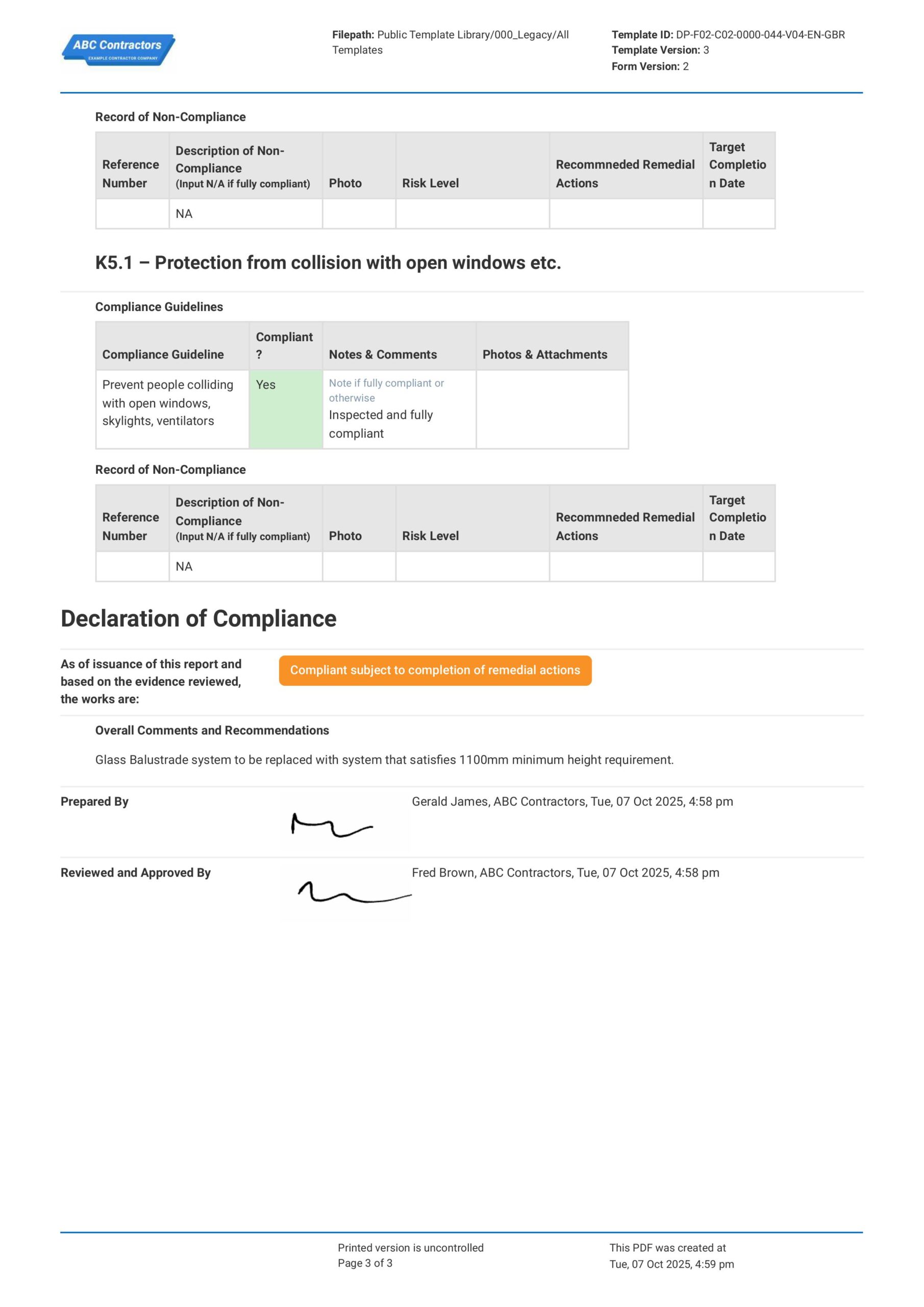 You are legally required to comply with Part K regulations and to submit the necessary supporting documents to the local building officials for verification. By submitting a compliance report like this, you will show that your team took all necessary measures to comply with regulations and ensure the safety of your work.